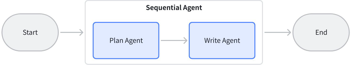 • Sequential construction: create a ResearchAgent via adk.NewSequentialAgent with two subagents — PlanAgent (planning) and WriterAgent (writing).