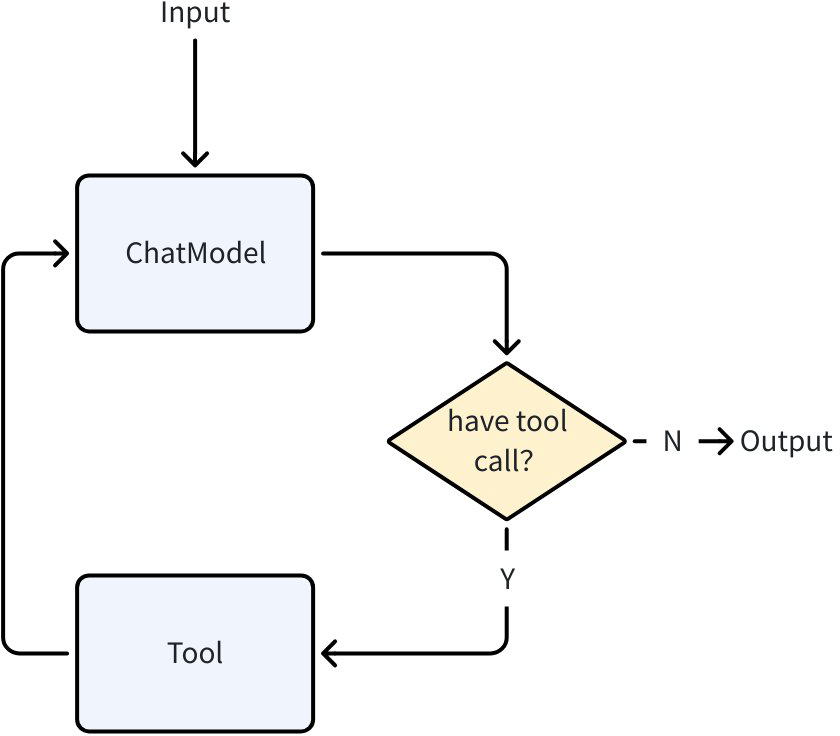 • ToolCall: call an agent as a tool when only parameters are needed; results return to the chat model. Also supports non-agent tools.