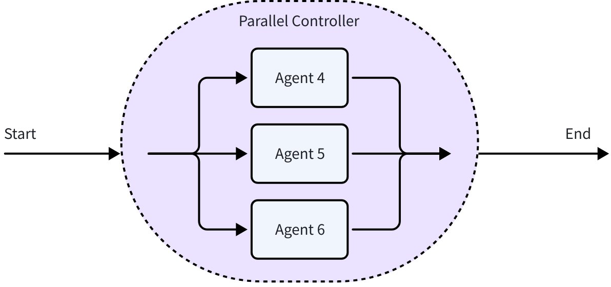 • ParallelAgent — run sub-agents concurrently with shared input; aggregate outputs.